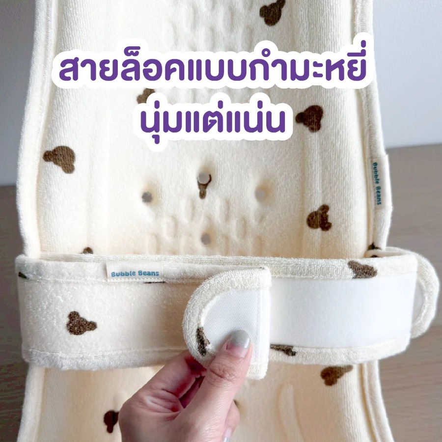 Bubble Beans คือเบาะอุ้มเด็กที่ช่วยให้ทุกการอุ้มเป็นเรื่องง่ายและปลอดภัยมากขึ้น มาพร้อมดีไซน์ลายน่ารัก “หมี” และวัสดุคอตตอนพรีเมียมที่นุ่มสัมผัส ใช้งานได้ตั้งแต่แรกเกิด โดยมีสายล็อคเสริมความปลอดภัยให้คุณพ่อคุณแม่อุ่นใจ ทั้งยังสามารถใช้เป็นเบาะรองนั่งให้นมได้ในตัว น้ำหนักเบา พกพาสะดวก ทุกมุมอุ้มคือมุมอบอุ่นสำหรับลูกน้อย