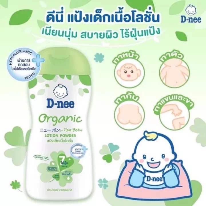 แป้งเด็กเนื้อโลชั่นสูตรออร์แกนิค ผสานคุณค่าของแป้งเด็กและโลชั่น ให้ผิวเนียนนุ่มชุ่มชื้น
